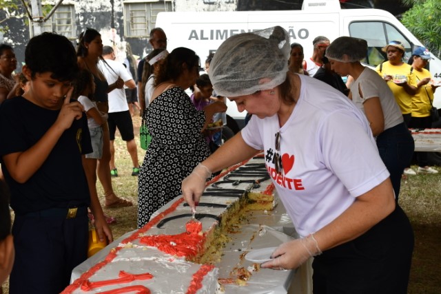 Após a Parada Festiva, os presentes serão contemplados com o bolo de aniversário de 108 anos, que será servido na quadra coberta do Parque do Povo.