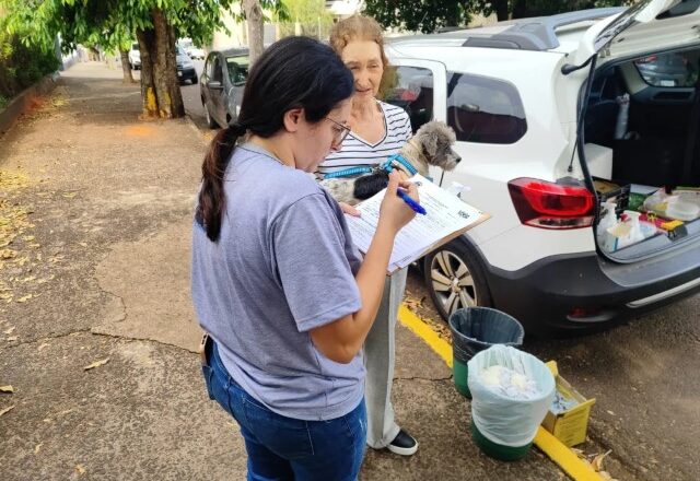 O atendimento será das 8h30 às 11h e das 14h às 16h, em frente à Cardiovida, com os seguintes serviços: coleta de sangue para exame de leishmaniose, chipagem de cães e vacinação antirrábica para cães e gatos com mais de quatro meses de idade.